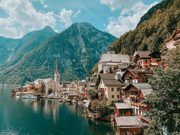 - Làng cổ Hallstatt được ví như là miền cổ tích, một trong những thị trấn trung cổ đẹp nhất tại Châu Âu. Ngôi làng có địa thế “tựa sơn, hướng thủy” vô cùng hoàn hảo theo quan niệm của phương Đông. Làng cổ Hallstatt tựa lưng vào dãy núi dãy Dachstein hùng vĩ và hướng mặt ra hồ Hallstattersee. Ngoài ra Hallstatt tập hợp những dãy nhà mang phong cách Holzhaus độc đáo nằm dọc bên hồ. Chính nhờ vẻ đẹp thơ mộng ấy mà Hallstatt được mệnh danh là “Hòn ngọc nước Áo” hay “Xứ sở thần tiên”.
