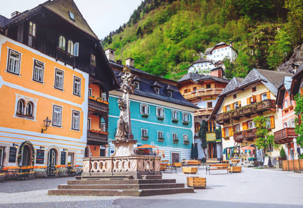 - Quảng trường Chợ (Marktplatz): Đây là trái tim của làng, nơi tập trung các cửa hàng, quán cà phê và những ngôi nhà với kiến trúc đặc trưng của vùng Salzkammergut.