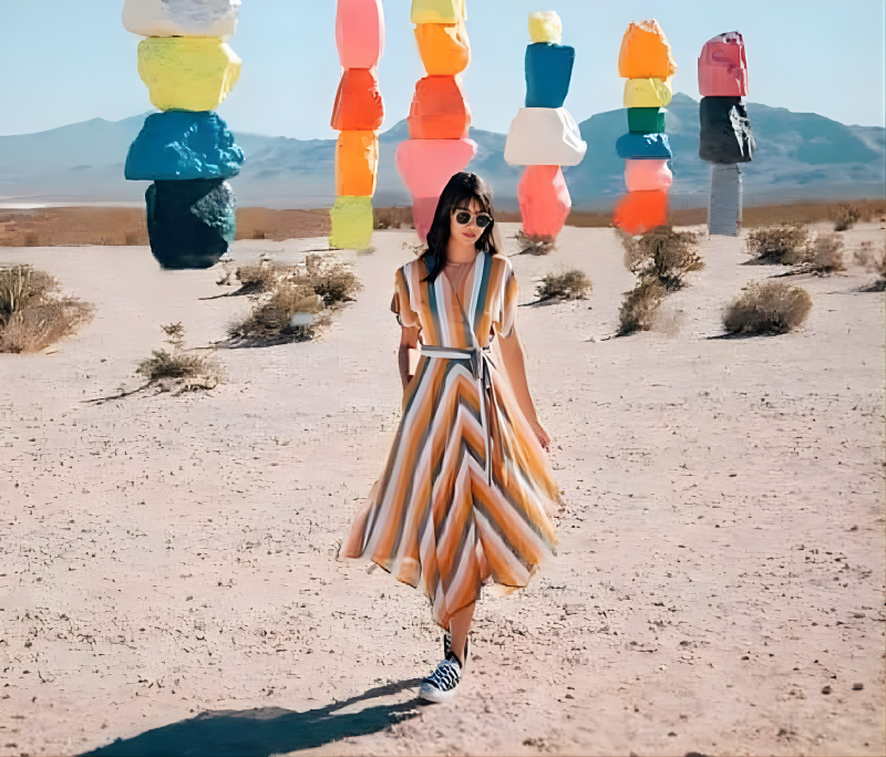 - Seven Magic Mountains (Công viên đá bảy màu): có kiến trúc độc đáo, mới lạ bậc nhất thế giới với điểm nhấn là những viên đá nhiều màu sắc được xếp chồng lên nhau. Seven Magic Mountains nằm ở mũi phía Nam của Vegas Boulevard Las, cách ngã tư đại lộ Las Vegas và St. Rose Parkway ở Henderson, bang Nevada khoảng 16km theo hướng Nam. Nó có diện tích khoảng 1,2 ha và được xây dựng với kinh phí khủng trong vòng 5 năm.