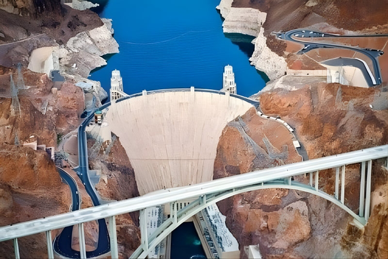 - Đập Hoover: Được xếp hạng là 1 trong 7 công trình xây dựng vĩ đại nhất nước Mỹ và là một trong 100 kỳ quan của thế giới ở thế kỷ XX. Đập mang tên của Tổng thống Herbert Hoover vì ông chính là người khởi xướng và đóng vai trò chính trong việc xây dựng công trình kiên cố mang tầm vóc chiến lược kinh tế xuyên thế kỷ này. Con đập được xây dựng trên dòng sông Colorado rộng lớn với chiều dài 2.333km, cuồn cuộn mang nguồn nước tưới cho 1/12 ruộng đất nước Mỹ.
