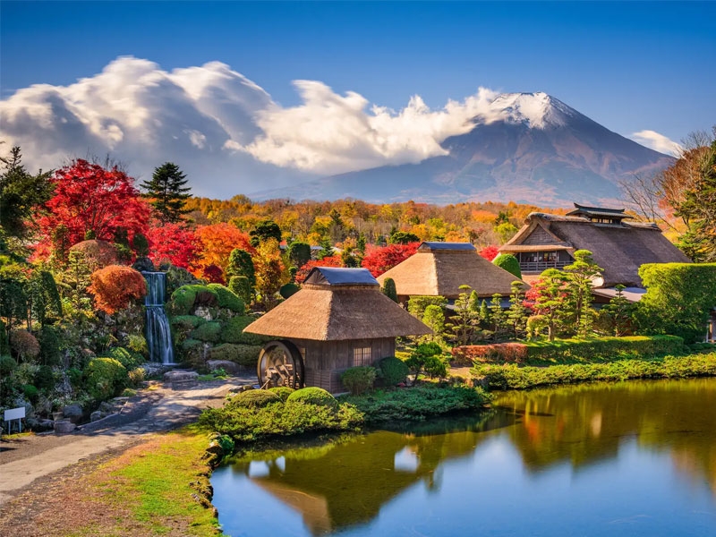 - Làng cổ Oshino Hakkai tuyệt đẹp: Ngôi làng nổi tiếng bởi có 8 hồ nước đặc biệt. Các hồ có cấu tạo phần đáy chủ yếu là nham thạch do quá trình kiến tạo địa chất và được nuôi dưỡng nhờ nguồn nước băng tuyết tan chảy từ đỉnh núi Phú Sĩ. Mỗi hồ nước lại được bàn tay con người chăm sóc giữ gìn nên toát lên vẻ trong sạch, thuần khiết. Đặt trong tổng hòa kiến trúc cân đối, thanh nhã, ngôi làng dường như được khoác lên mình chiếc áo vừa hoài cổ mà cũng rất đỗi tươi đẹp, bình yên, tạo nên một bức tranh thôn quê với những mảnh vườn xanh mướt trồng rau xanh, chè tươi, luống cải hoa vàng...