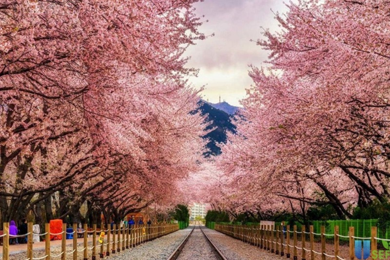 Jinhae Gunhangje Festival – Lễ Hội Hoa Anh Đào Lớn Nhất Hàn Quốc Hơn 360.000 cây anh đào nở dọc kênh đào, cầu Yeojwacheon – cảnh đẹp huyền thoại từng xuất hiện trong nhiều phim.