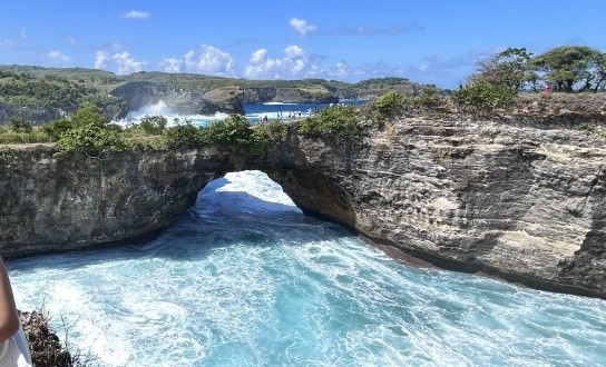 - Xe đưa đoàn đến tham quan Sanur để đáp tàu đi Đảo Nusa Penida – “thiên đường thu nhỏ” ở biển phía Tây của Bali. Hòn đảo đá vôi nổi tiếng với bãi cát trắng muốt và vách đá cao gần 200m sát biển đã tạo nên sự độc đáo, hung vĩ của riêng nơi đây. Đoàn tham quan: