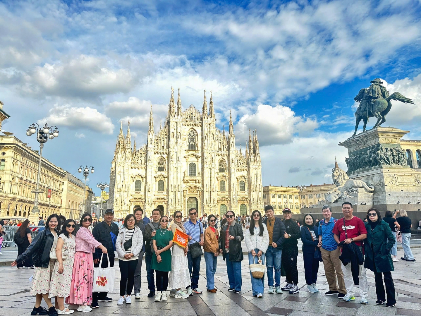 - Chụp hình bên ngoài Nhà thờ Duomo – nhà thờ chính toà nguy nga nhất nước Ý. Nhà thờ Duomo là sự giao hưởng hài hòa giữa hai trường phái kiến trúc là Gothic và Roman Romanesque. Từ xa, công trình trông giống những cây thánh giá với đường nét chạm khắc tinh xảo.