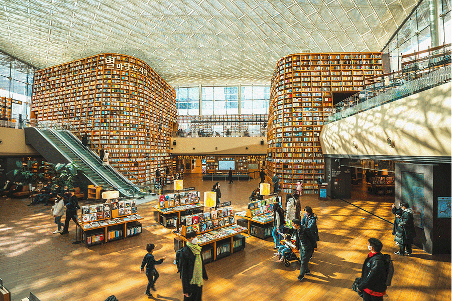 - Từ ngày 21/01 - 18,25/02 - 11,18/03 đoàn sẽ tham quan Thư viện Starfield: một địa điểm check-in hoàn hảo dành cho những ai có niềm đam mê với sách đến để chụp ảnh, chiêm ngưỡng vẻ đẹp kiến trúc đồ sộ với những giá sách cao chót vót được trang trí lộng lẫy cũng như sự nguy nga, tráng lệ trong phong cách xây dựng.