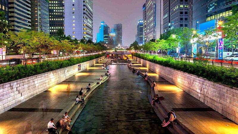 - Từ ngày 21/01- 18,25/02 - 11,18/03 đoàn sẽ tham quan Suối Cheonggyecheon - Con suối thể hiện sự bình dị, nhẹ nhàng và mang đến cảm giác dễ chịu cho xung quanh. Đây còn là điểm thường tổ chức nhiều hoạt động thu hút người dân và khách du lịch tham quan hàng năm.
