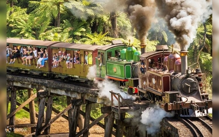 • Tàu lửa hơi nước Puffing Billy: tuyến đường sắt di sản nổi tiếng tại Melbourne, Úc, hoạt động từ năm 1900, nổi bật với trải nghiệm "mở" cho phép hành khách ngồi đung đưa chân bên ngoài toa. Chuyến tàu chạy qua dãy núi Dandenong hùng vĩ, băng qua các cầu gỗ cổ kính và rừng bạch đàn, mang lại hoài niệm về kỷ nguyên hơi nước. Trên đường đi, du khách có thể nhìn ngắm Công viên hồ Emerald.