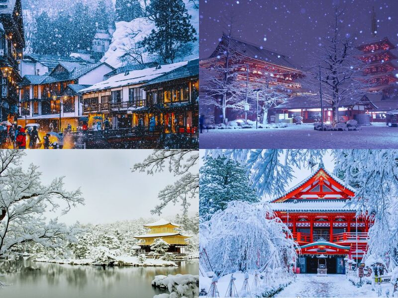 • Mùa tuyết rơi đầu tiên: Từ tháng 12 đến tháng 2, Hokkaido, Nagano, Niigata phủ trắng tuyết, biến Shirakawa-go, Jigokudani (khỉ tuyết tắm onsen), địa ngục tuyết Tateyama Kurobe Alpine thành thiên đường mùa đông.